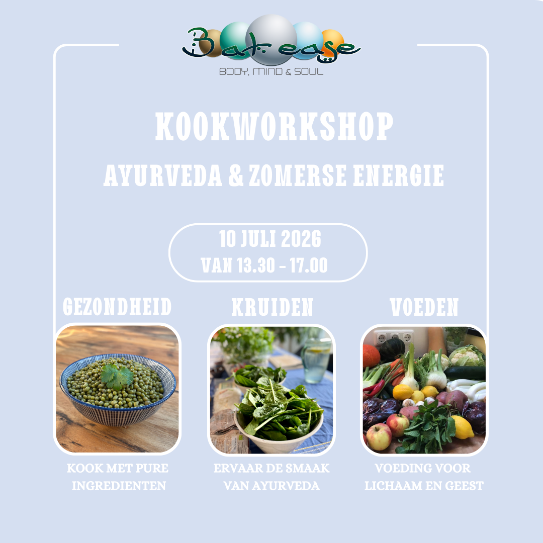 🌿 Dosha-focus: In juli staat Pitta centraal. We koken koel, mild en licht zodat je in balans blijft tijdens warme dagen.